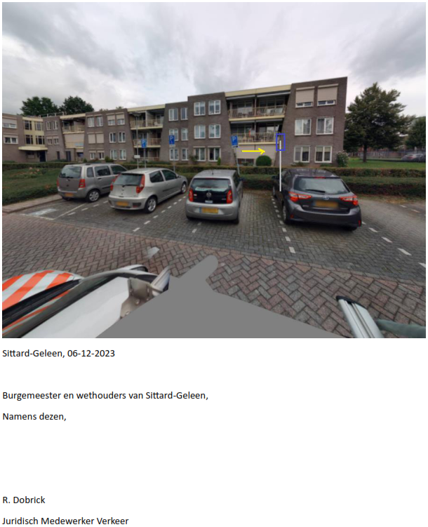 Conform het bepaalde in de op 22 november 2021 in het Gemeenteblad onder nummer 419044 bekend gemaakte, op 23 november 2021 in werking getreden “Mandaatregeling Teams gemeente Sittard-Geleen 2021” de dato 9 november 2021 en het op 21 december 2022 in het Gemeenteblad onder nummer 565582 gepubliceerde en op 22 december 2022 in werking getreden “Mandaatregister gemeente Sittard-Geleen 2023” d.d. 15 december 2022, is onder voorwaarden mandaat verleend aan de Juridisch medewerker Verkeer voor het nemen van verkeersbesluiten.