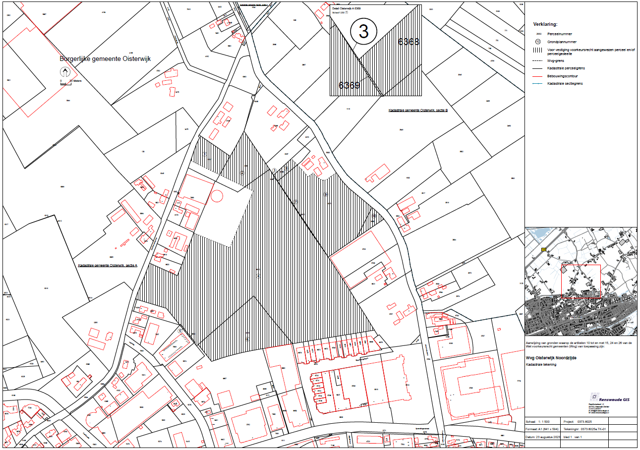Lijst van aangewezen percelen of perceelsgedeelten in de kadastrale gemeente Oisterwijk, sectie A, waarop de artikelen 10 tot en met 15, 24 en 26 van de Wet voorkeursrecht gemeenten van toepassing zijn, zoals deze voorkomen op de grondplantekening Wvg Oisterwijk Noordzijde met nummer 0373.8025a.TK-01 de dato 23 augustus 2023 van het gebied ‘Oisterwijk Noordzijde’ naar de rechtstoestand van (bijgewerkt t/m) 22 augustus 2023.