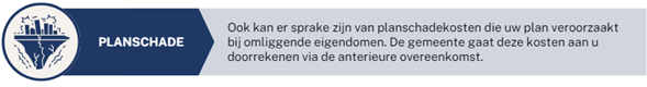 Anterieure overeenkomst voor rest ambtelijke inzet: De verdere afspraken over uw initiatief die u met de gemeente samen maakt, worden daarna vastgelegd in een anterieure overeenkomst. Hier wordt ook een bijdrage afgesproken voor de rest van ambtelijke inzet dat nodig is totdat uw initiatief planologisch wordt ingepast (middels een bestemmingsplan of omgevingsvergunning). Om dit bedrag te berekenen wordt een zogenaamde plankostenraming aan de hand van een rekenmodel opgemaakt. Met deze raming schat de gemeente vooraf de benodigde uren voor de ambtelijke inzet in, dit geeft zekerheid aan initiatiefnemers: Achteraf worden er geen extra uren meer in rekening gebracht. Alleen in bijzondere gevallen, en op basis van overeenstemming, kan sprake zijn van een herziening van de overeengekomen bijdrage. BTW is hier niet van toepassing.