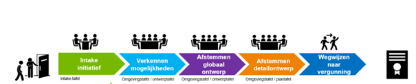 Leges of overeenkomst omgevingstafel: Bij doorgang wordt uw initiatief intern besproken door de gemeentelijke omgevingstafel(s). Afhankelijk van de omvang van het initiatief kunnen meerdere omgevingstafels benodigd zijn waarin uw initiatief wordt behandeld. Voor de behandeling van uw initiatief brengt de gemeente ook leges in rekening. De hoogte van deze leges is afhankelijk van de complexiteit van uw initiatief, er worden vaste legesbedragen gehanteerd per omgevingstafeloverleg.