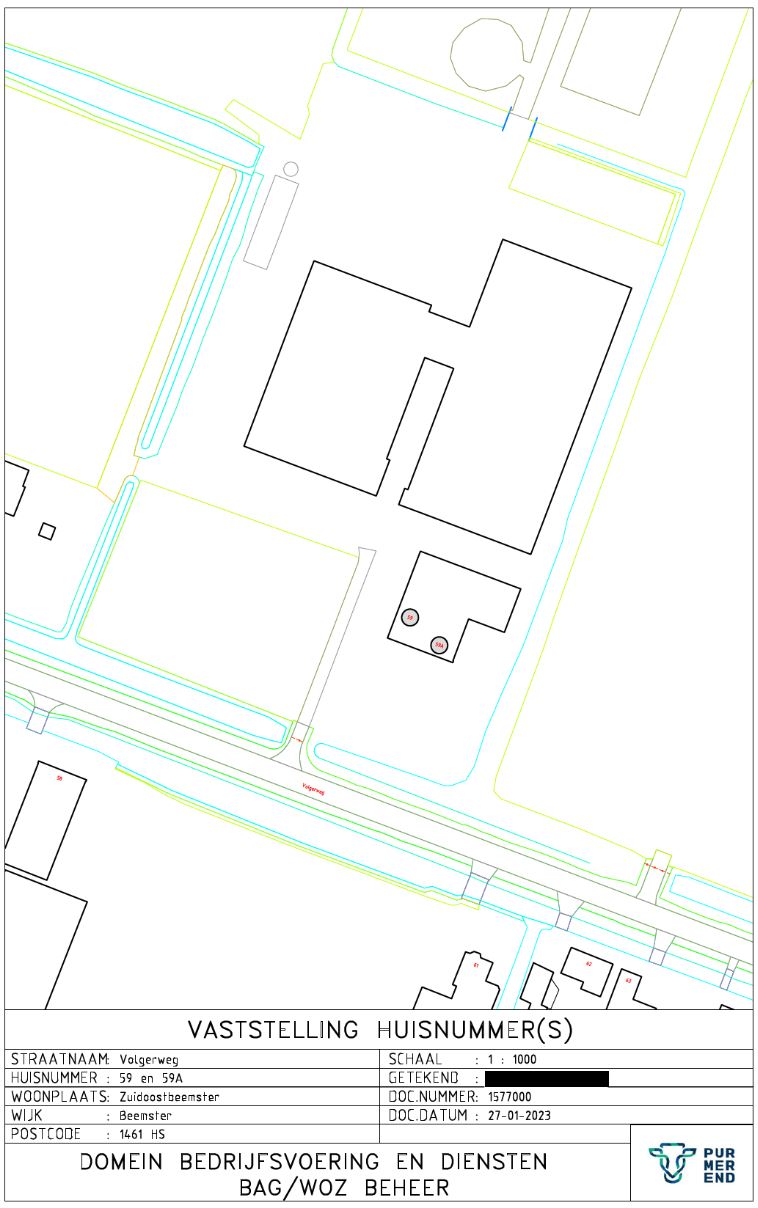 Kennisgeving huisnummerbesluit Volgerweg 59 en 59A Zuidoostbeemster