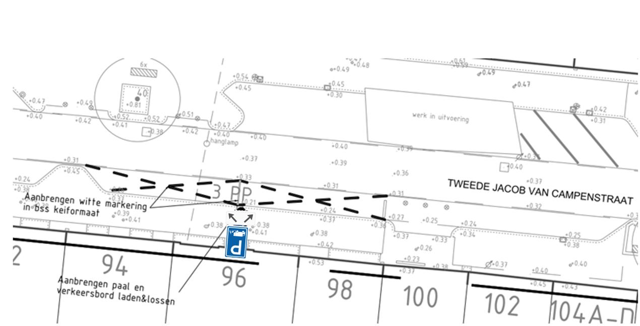 Amsterdam Zuid, verkeersbesluit Tweede Jacob van Campenstraat 94-98, laad- en losplaatsen