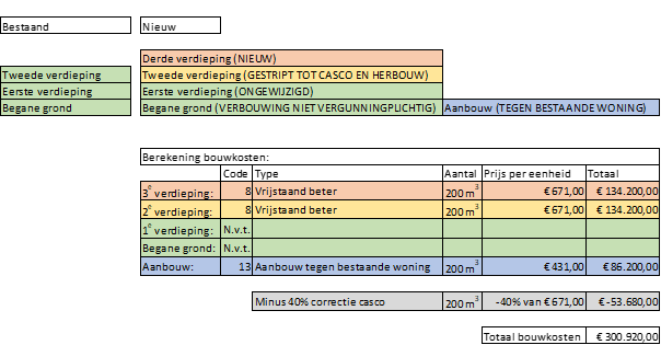 De bouwkosten bij verbouw en herbouw worden berekend op de volgende manier: