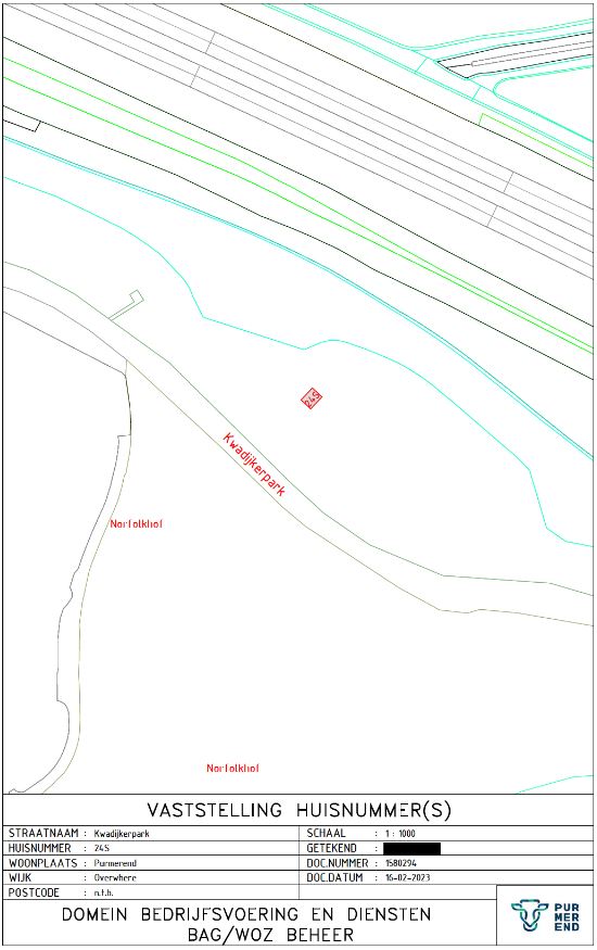 Kennisgeving huisnummerbesluit Kwadijkerpark 24S Purmerend