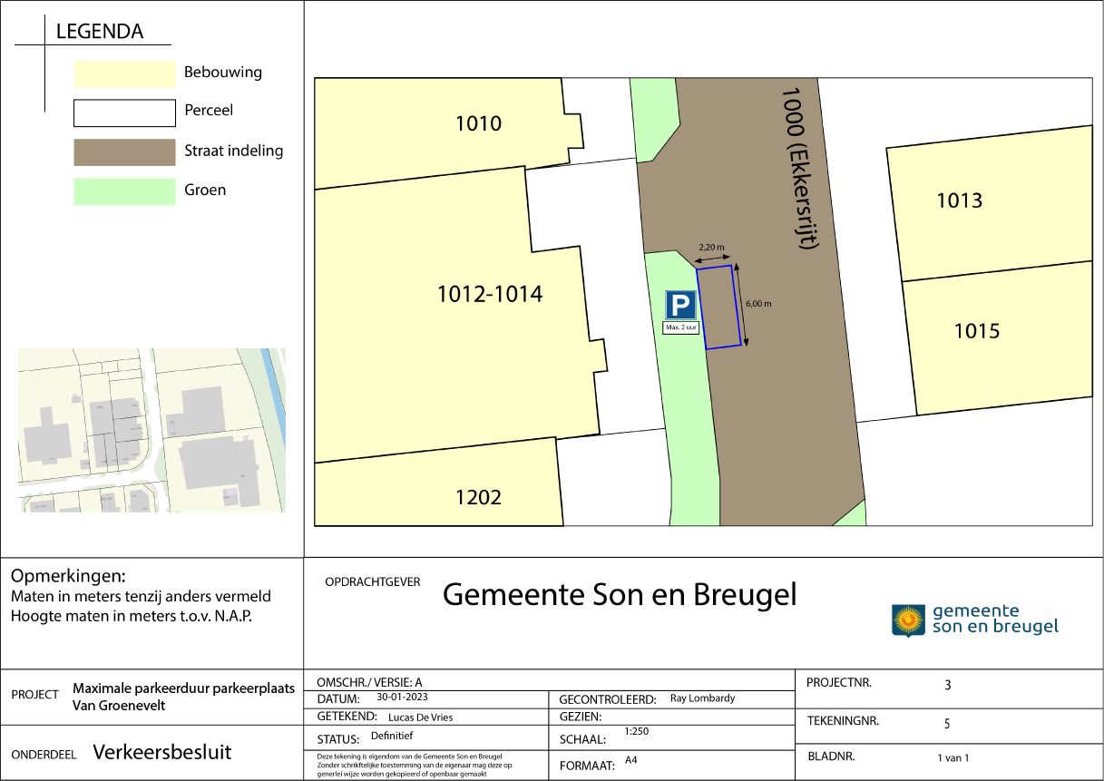 Tekening ‘Parkeerplaats.1000(Ekkersrijt).versie1 (maximale parkeerduur); Verkeersbesluit Aanwijzen parkeerplaats (maximale parkeerduur), versie A, d.d. 09-02-2023