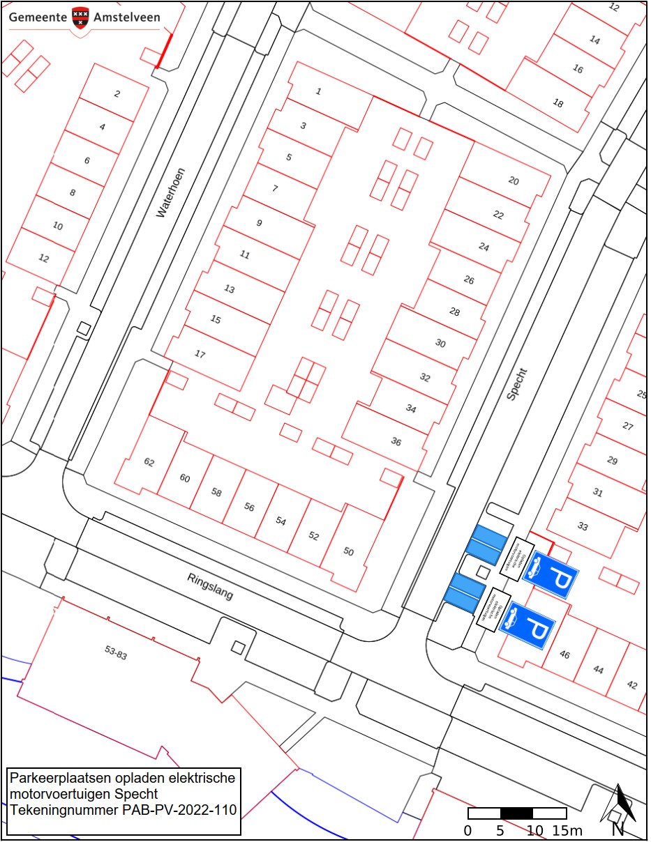 Burgemeester en wethouders van Amstelveen besluiten om hun besluit van 10 augustus 2022 (zaaknummer Z22-062723), waarbij vier parkeerplaatsen in de straat Specht zijn aangewezen als parkeerplaats voor het opladen van elektrische motorvoertuigen, in te trekken. De openbare laadpalen zijn nog niet geplaatst waardoor in de praktijk niets veranderd. De geplande parkeerplaatsen voor het opladen van deze elektrische motorvoertuigen zijn weergegeven op de in dit besluit opgenomen tekening PAB-PV-2022-110.