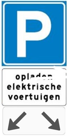 We maken parkeerplaatsen voor het laden van auto’s door het plaatsen van een elektrische oplaadpaal, die twee aansluitingen heeft. We kruisen deze twee parkeerplaatsen af en plaatsen verkeersborden. Daardoor mogen daar alleen voertuigen staan die worden opgeladen.