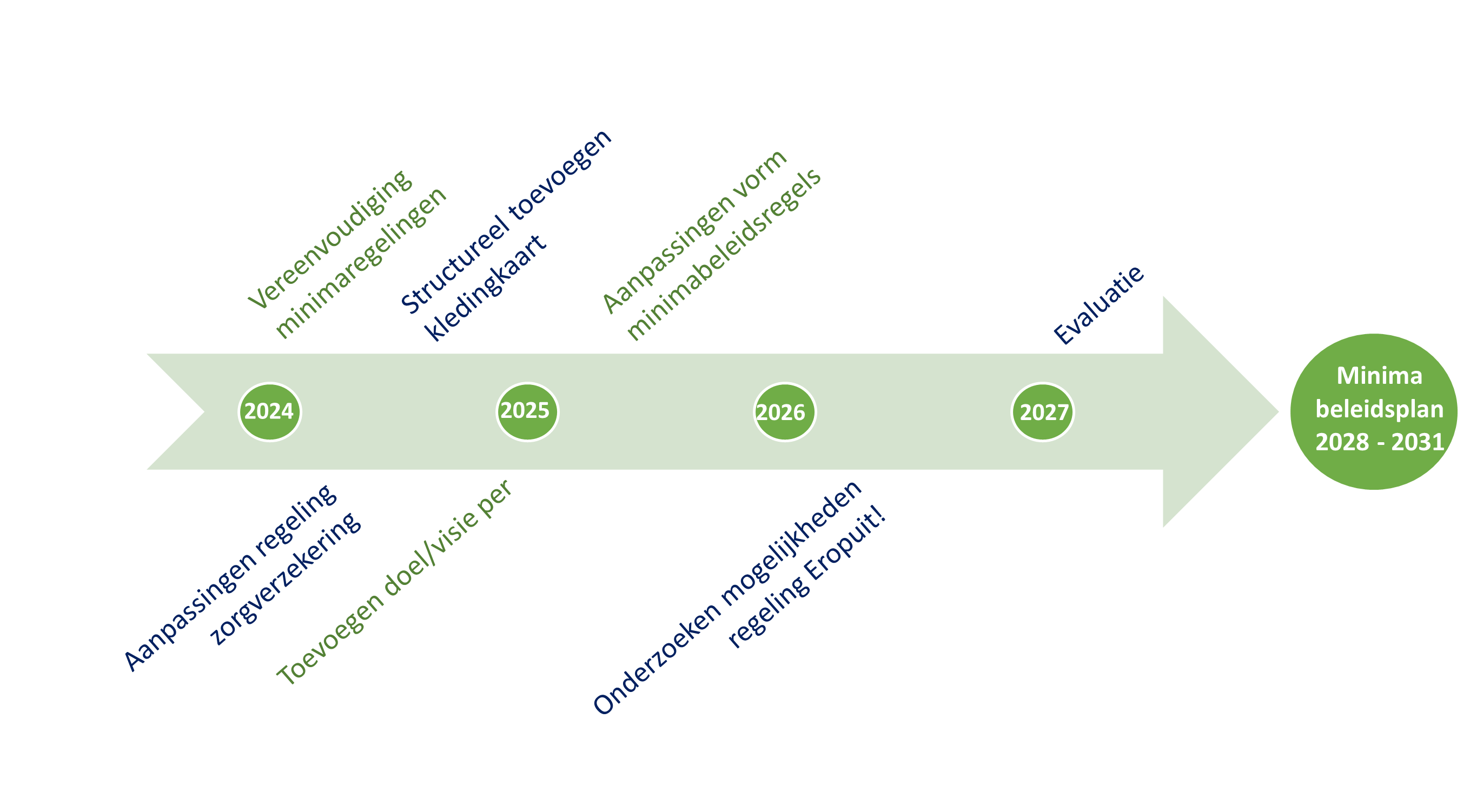 In 2027 vindt een evaluatie plaats naar het minimabeleid en het effect van de toegepaste aanpassingen naar aanloop van de vaststelling van het minimabeleidsplan 2028 – 2031.