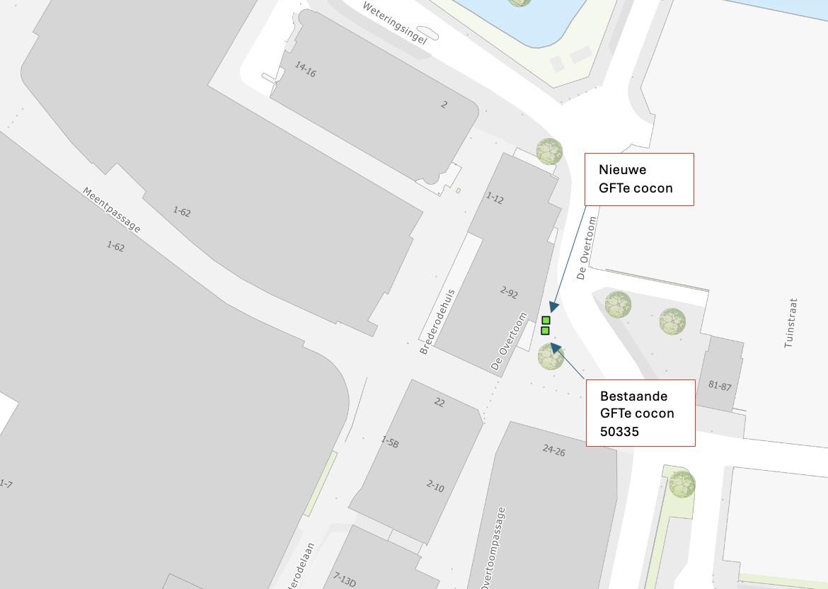 De locatie(s) aangeduid met G8-WP04 De Overtoom & G1-WP04 De Overtoom (2023-0151210), zoals aangegeven op de bij dit besluit behorende overzichtstekening aan te wijzen als bovengrondse inzamelvoorziening voor de inzameling van huishoudelijk Groente-, Fruit- en Tuinafval en etensresten (GFTe) door de gebruikers van de percelen: