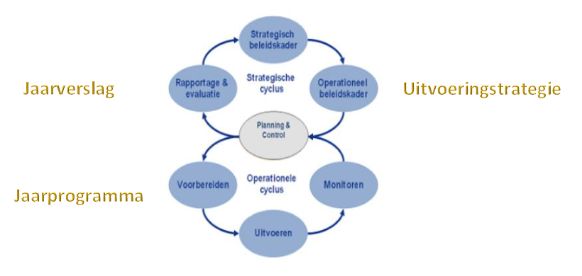 Deze strategie is een beschrijving op hoofdlijnen. De gedetailleerde uitwerking van de strategie staan in de bijlagen. De concrete uitwerking en vertaling van deze strategie naar de uitvoeringspraktijk wordt beschreven in onze jaarlijkse VTH-uitvoeringsprogramma’s. De verslaglegging over de uitvoering van ons beleid en programma vindt jaarlijks plaats in het VTH-jaarverslag. Hiermee maken wij dan de invulling van de beleids- en uitvoeringscyclus ‘rond’. De afbeelding hieronder geeft de cyclus weer.