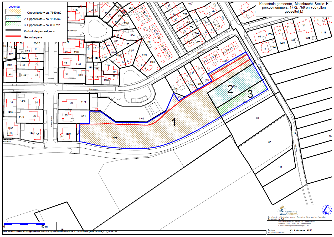 De gemeente Maasgouw is voornemens om percelen, gelegen aan de zuidzijde van de kern Maasbracht, in het verlengde van de Amalialaan tot aan de 2e Heiweg in Maasbracht te verkopen aan Ruimte voor Ruimte Beheer B.V..