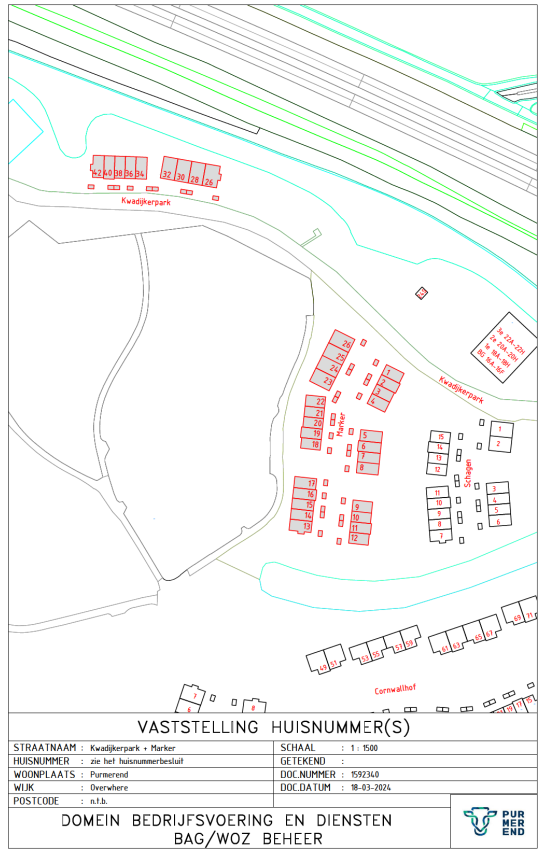 Kennisgeving huisnummerbesluit Kwadijkerpark 26 t/m 42 en Marker 1 t/m 26 Purmerend