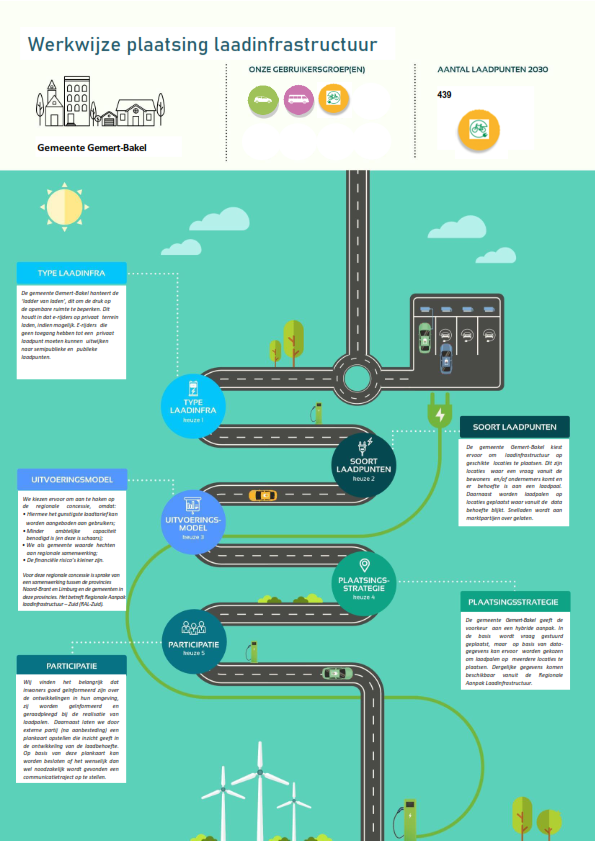Een van de afspraken is dat gemeenten zorgen voor de plaatsing van laadinfrastructuur. Voor de gemeente Gemert-Bakel geeft de notitie Werkwijze plaatsing laadinfrastructuur de komende jaren richting aan de ontwikkeling van een dekkend, toegankelijk, betaalbaar, en veilig netwerk van laadinfrastructuur voor alle elektrische voertuigen. De notitie dient daarmee als basis om de plannen rondom de uitvoering en uitrol van laadinfra mee op te kunnen stellen.