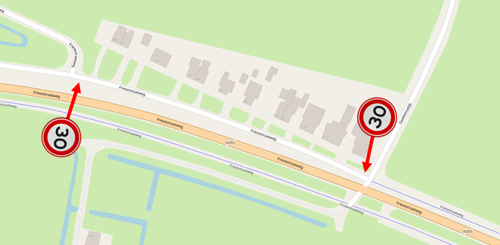 Om de leefbaarheid rond het stuk parallelweg tussen de Friesestraatweg 299 en Gaaikemadijk 1 te borgen wil de Gemeente Groningen de snelheid op dit gedeelte zo spoedig mogelijk verlagen naar 30 km/u met een ‘tijdelijke’ inrichting, door het plaatsen van vier obstakels met reflectoren. De definitieve inrichting van dit gebied wordt meegenomen tijdens de realisatie van de parallelweg. De Provincie Groningen heeft vervolgens een ontwerp opgesteld, waarin de ‘verlegde’ parallelweg wordt afgewaardeerd tot een erftoegangsweg inrichting (30km/u zone). De bovengenoemde verkeersmaatregelen kunnen worden genomen door het plaatsen van borden A1 (30).