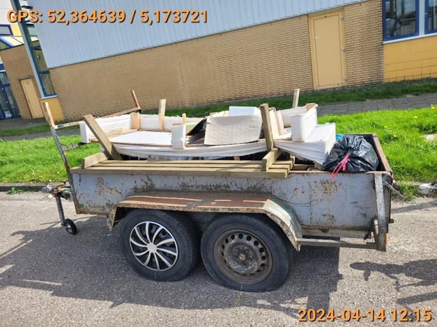 Op de Wormerweg ter hoogte van perceel 7 te Almere staat een aanhangwagen met dubbel assen geplaatst in strijd met het bepaalde in artikel 5:4 van de Algemene Plaatselijke Verordening (APV 2011. Op grond van artikel 5:5 eerste lid van de APV 2011 is het verboden een voertuig dat voor recreatie of anderszins voor andere dan verkeersdoeleinden wordt gebruikt zoals een caravan, een kampeerwagen, een aanhangwagen, een keetwagen of ander dergelijk voertuig langer dan op drie achtereenvolgende dagen zonder wezenlijke tijdsonderbreking te plaatsen of te hebben op de weg binnen de bebouwde kom. Voor zover onze gegevens reiken, hebben wij voor het bovengenoemde artikel geen ontheffing hiervoor aan u verleend.