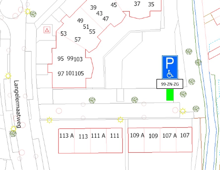 Het aanwijzen en inrichten van een gehandicaptenparkeerplaats op kenteken aan de Langelermaatweg door het plaatsen van het verkeersbord E6 van het RVV 1990 met onderbord met kenteken 99-ZN-ZG, ter hoogte van perceel 107-107A, zoals is aangegeven op de overzichtstekening in dit besluit.