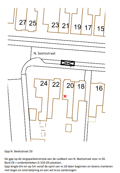 dat het aanwijzen van een gehandicaptenparkeerplaats het beste kan geschieden ter hoogte van de Nicolaas Beetsstraat 20, volgens de bijgevoegde situatieschets;