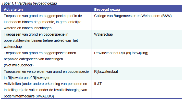 In tabel 1.1 is een overzicht gegeven van de relevante activiteiten en bevoegde gezagen.