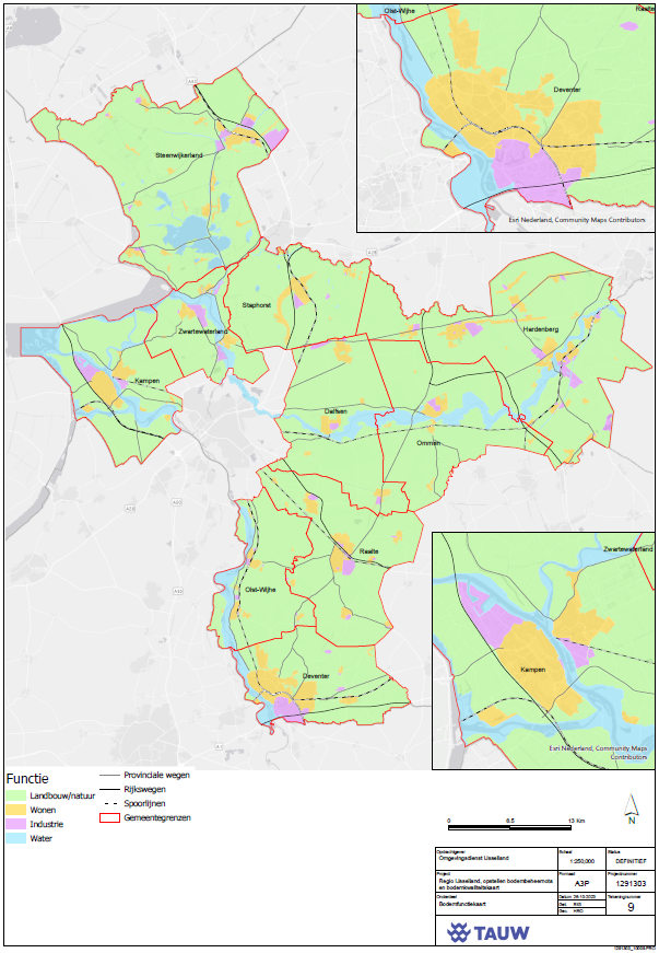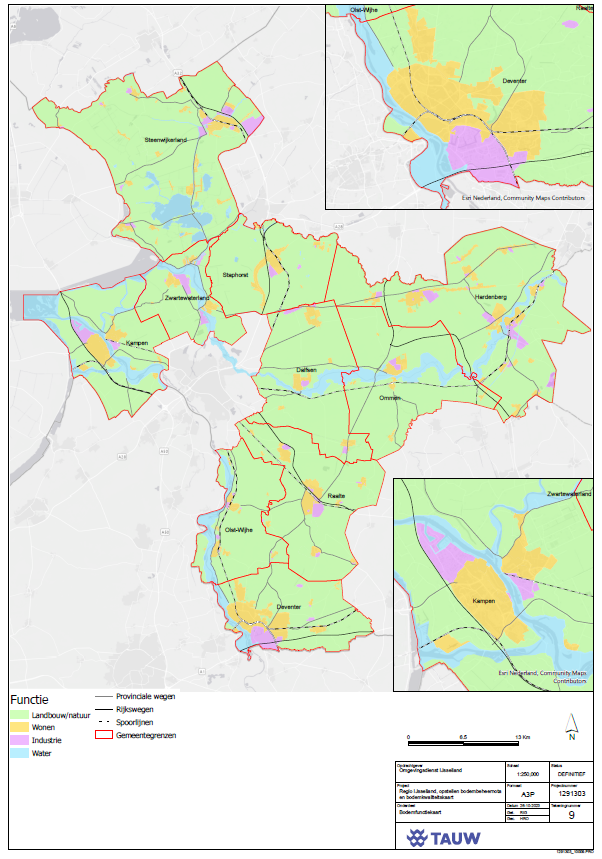 De bodemfunctiekaart is te vinden in bijlage 2. De bodemfunctiekaart is grotendeels gelijk gebleven ten opzichte van de bodemfunctiekaart uit 2013. De wijzigingen bestaan overwegend uit uitbreidingen met woningbouw in de steden en dorpskernen en plaatselijke uitbreiding van bedrijventerreinen. Ten zuiden van Kampen is de bypass Het Reevediep aangelegd, een rivierarm van de IJssel naar het Drontermeer.