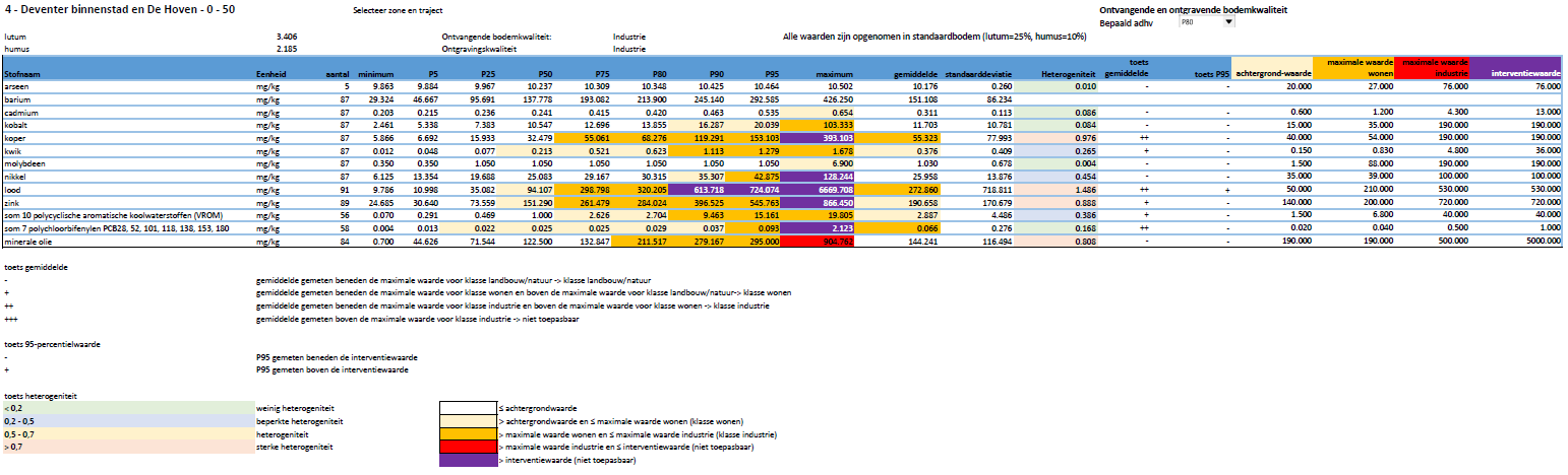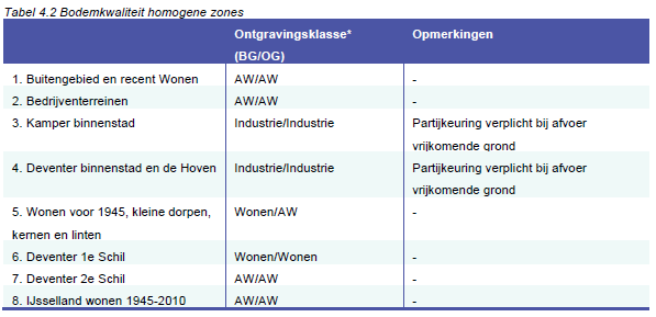Voor de zones Deventer binnenstad en Kamper binnenstad zijn partijkeuringen noodzakelijk bij de afvoer van grond als bewijsmiddel omdat de P95 van 1 of meerdere parameters de interventiewaarde overschrijdt.
