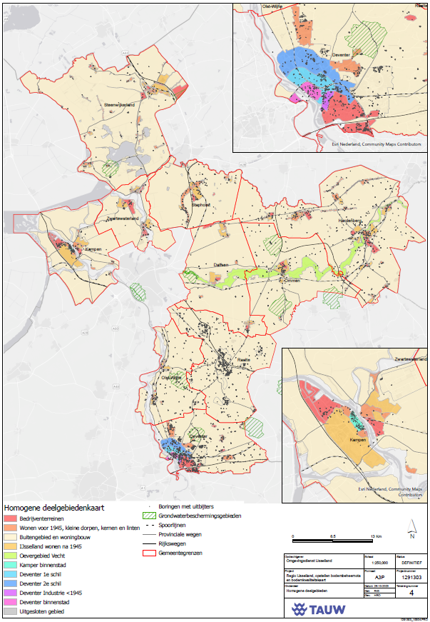 De stad Kampen was een echte Hanzestad en bestaat uit 3 oude woongebieden: de oude binnenstad, Brunnepe en Oud Zuid. De oude binnenstad en Brunnepe zijn heterogeen verontreinigd als gevolg van de diversiteit aan industrie en bedrijvigheid in deze gebieden. Oud Zuid is in het verleden opgehoogd. De nieuwbouwwijken in de omgeving zijn sinds de jaren 70 gerealiseerd op landbouwgrond.