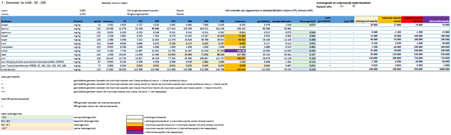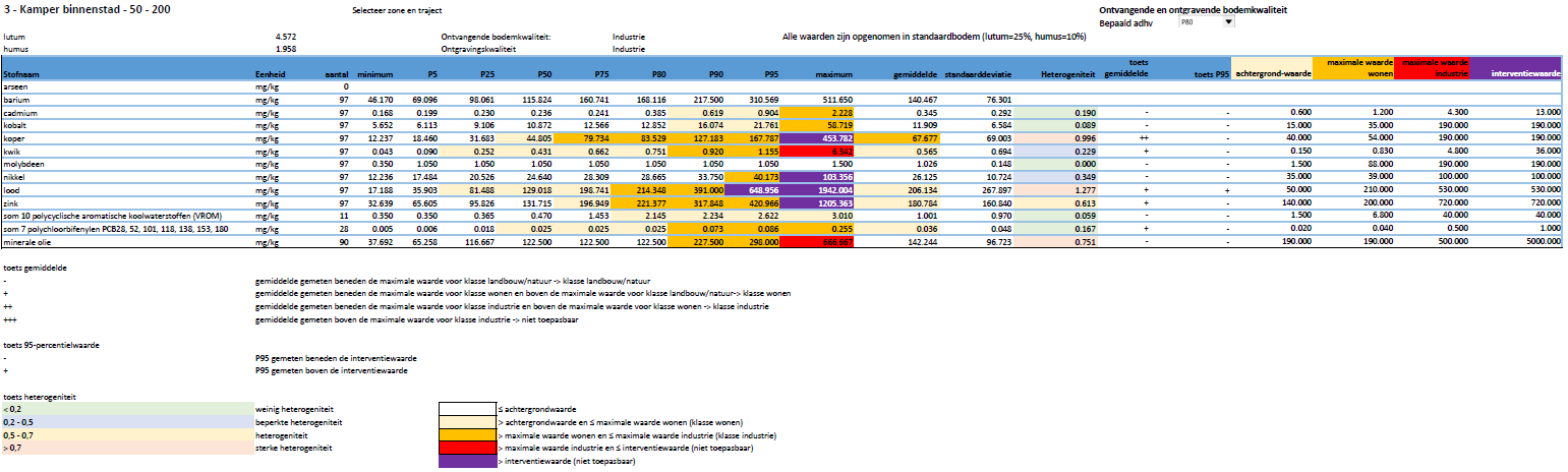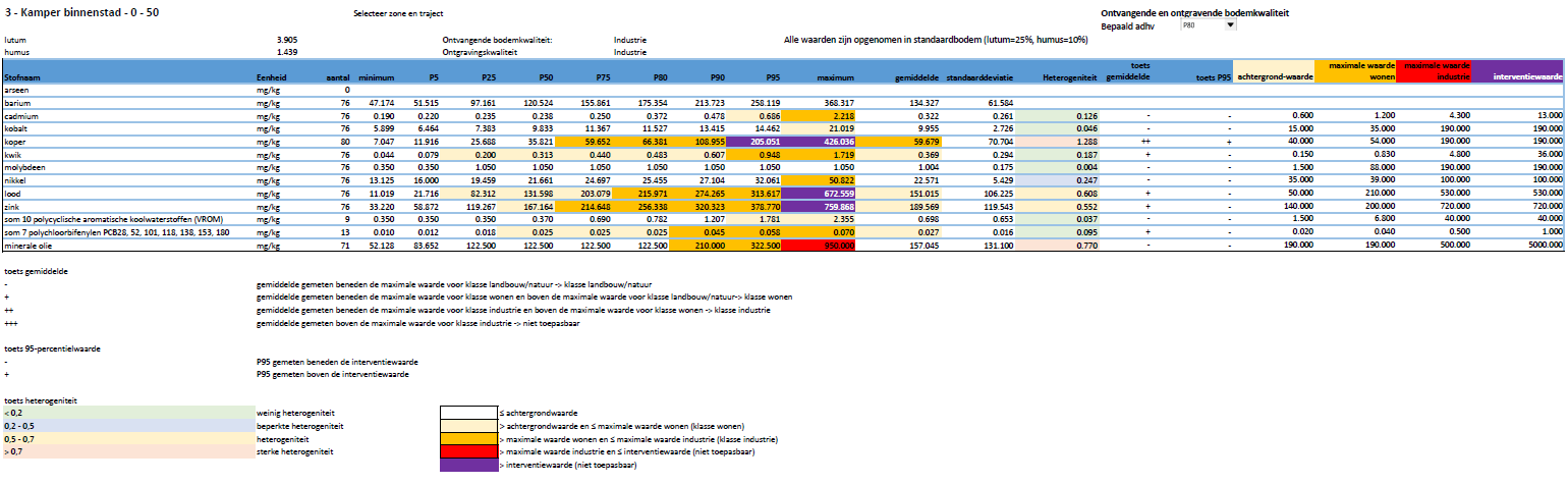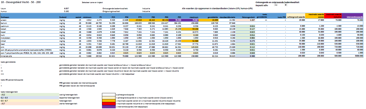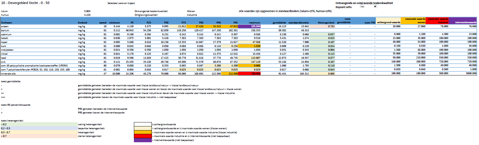 Voor het betreffende gebied is er in enige mate heterogeniteit aangetoond. Hierbij overschrijden zowel in de boven- als ondergrond koper, kwik, lood, zink, PCB en PAK de achtergrondwaarden. Voor de betreffende zone zijn uitbijters van koper en lood verwijderd die zijn vastgesteld op reeds gesaneerde locaties. Na verwijdering van de betreffende uitbijters valt de bodemkwaliteit van zowel de boven- en ondergrond in de klasse Wonen. Hiermee is de bodemkwaliteit voor de bovengrond verbeterd ten opzichte van de verlenging in 2019, waarbij de bovengrond als industrie was geclassificeerd.