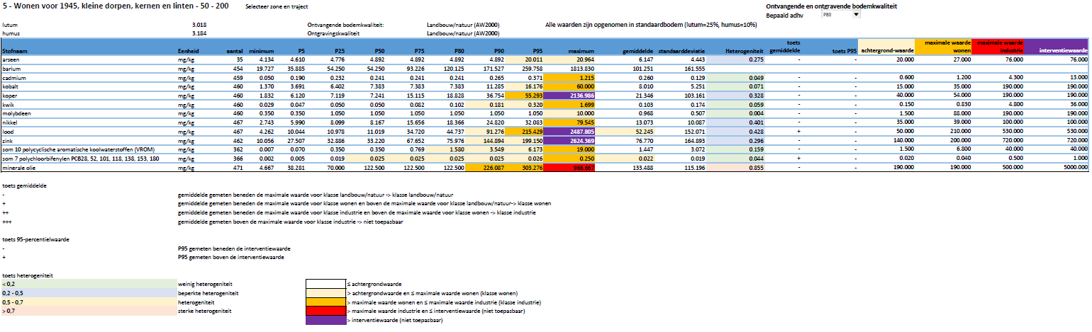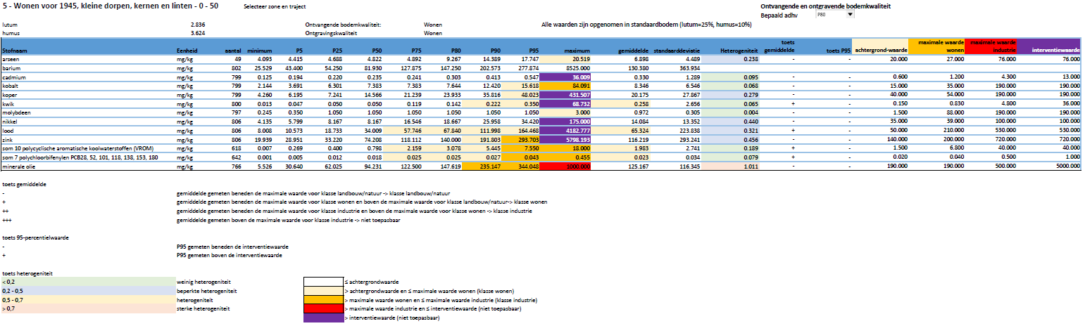 De dataset laat eenzelfde beeld zien, na verwijdering van uitbijters, ten opzichte van de reeds vastgestelde bodemkwaliteit uit de verlenging van 2019. De classificatie op basis van de P80 voor de bovengrond is Wonen. De ondergrond valt in de klasse Landbouw/Natuur. Gezien de historie en de karakteristiek van het betreffende deelgebied wordt het gebied samengevoegd in de zone Wonen voor 1945, kleine dorpen, kernen en linten (5).