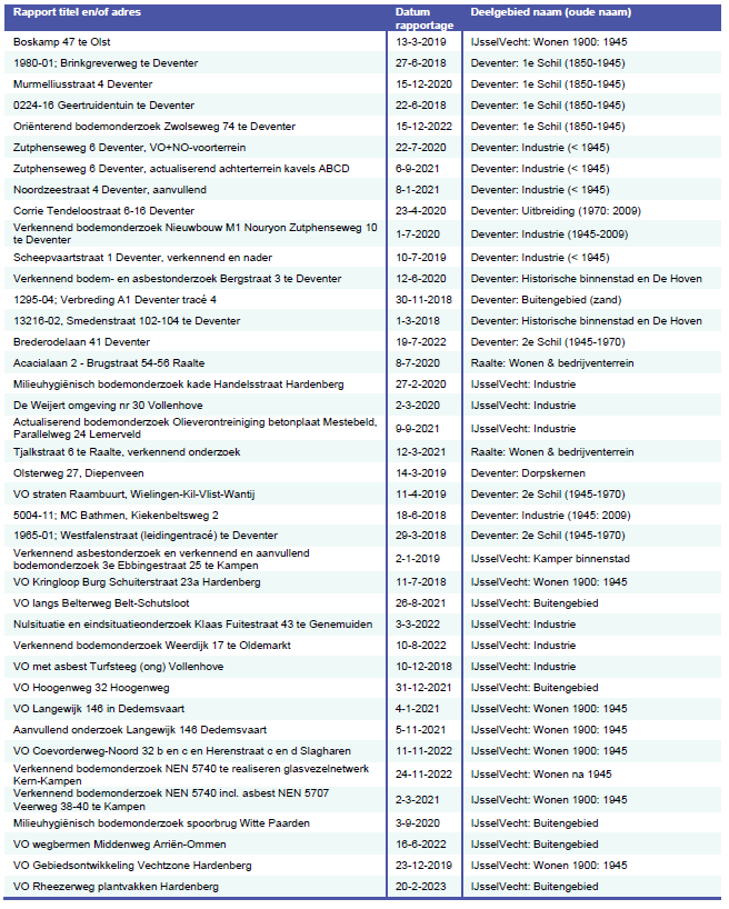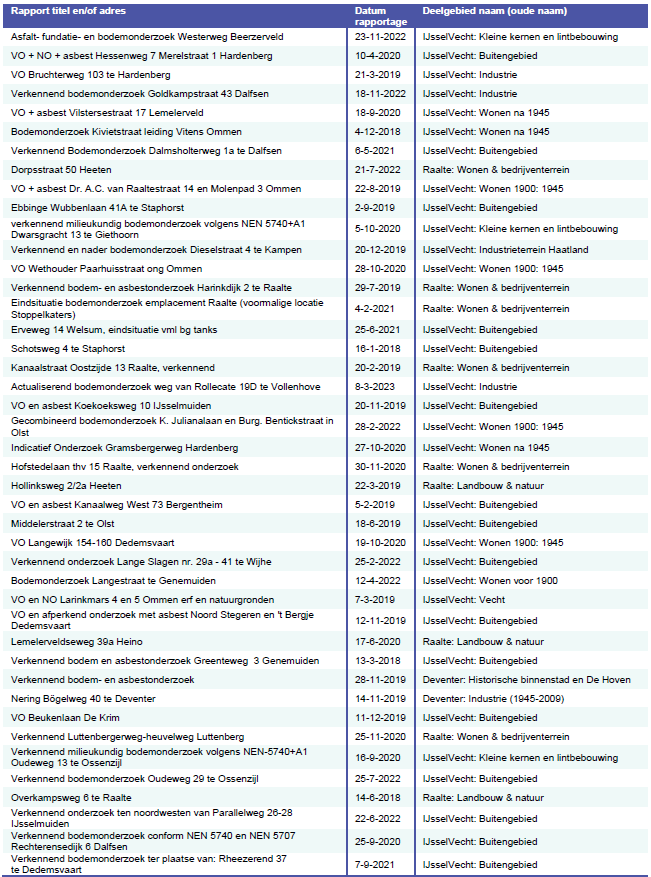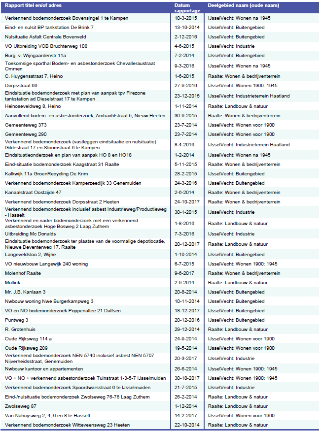 Ter plaatse van Haatlanden heeft de laatste 10 jaar revitalisering plaatsgevonden waarbij de gemeente kleine percelen heeft aangekocht, onderzocht, gesaneerd, samengevoegd en weer verkocht. Het oudere deel kenmerkt zich derhalve door de nog aanwezige kleinschalige bedrijvigheid. De zuiderzeehaven is met de aanleg rond het jaar 2000 volledig opgehoogd met categorie 1 en 2 grond. Dit komt globaal overeen met grond in de huidige klasse Wonen en deels Industrie. Het nieuwste industriedeel ter plaatse van Kampen betreft de Rijksweg 50. Spoorlanden en Zendijk in IJsselmuiden betreft geen zware (chemische) industrie, op een verzinkerij na, maar is wel een gebied waar veel asfalt als verharding is gebruikt.