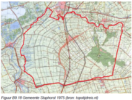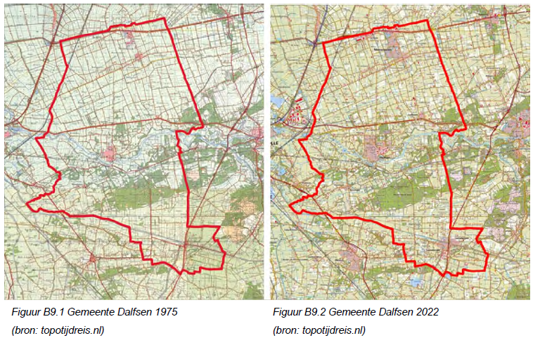 De afgelopen 50 jaar is de gemeente sterk gegroeid op het gebied van woningbouw en industriegebieden, wat duidelijk zichtbaar is in het historisch kaartmateriaal (zie figuur B9.14 en B9.15).
