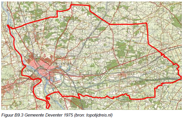 In de onderstaande figuren is de sterke groei van de stad Deventer zichtbaar.