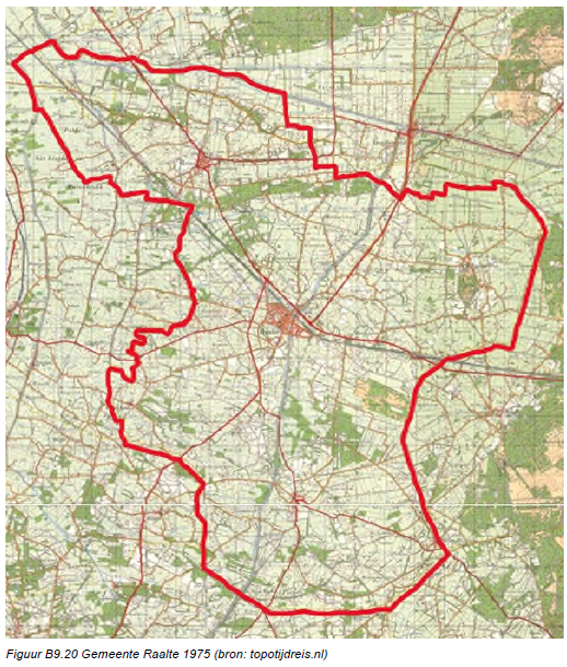 Vanaf de jaren '60 is met name de kern van Raalte gaan groeien in verschillende cirkels rond het centrum, wat goed te zien is op Topotijdreis (zie ook figuur B9.20 en B9.21). Heino is sinds de jaren ’70 sterk in ontwikkeling en is in 2001 gefuseerd met de gemeente Raalte.