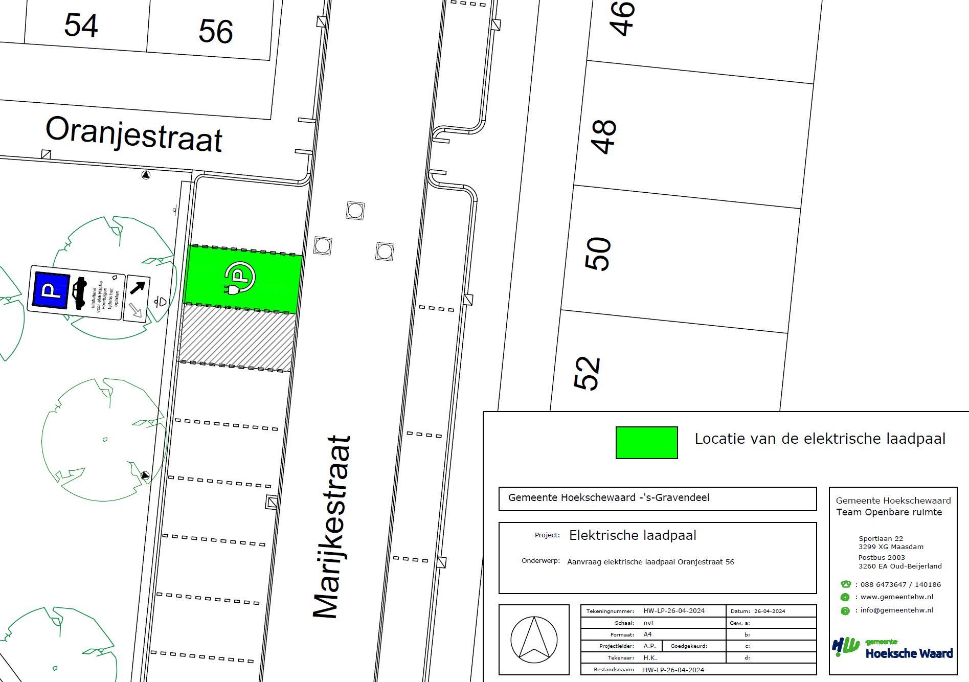 Twee parkeerplaatsen aan te wijzen voor het uitsluitend opladen van elektrische voertuigen, waarbij aanvankelijk slechts één parkeerplaats wordt geëffectueerd. Dit door middel van het plaatsen van het bord E8c van het RVV (Reglement Verkeersregels en Verkeerstekens 1990) voorzien van het onderbord met de tekst ” Uitsluitend voor elektrische voertuigen tijdens het opladen”.