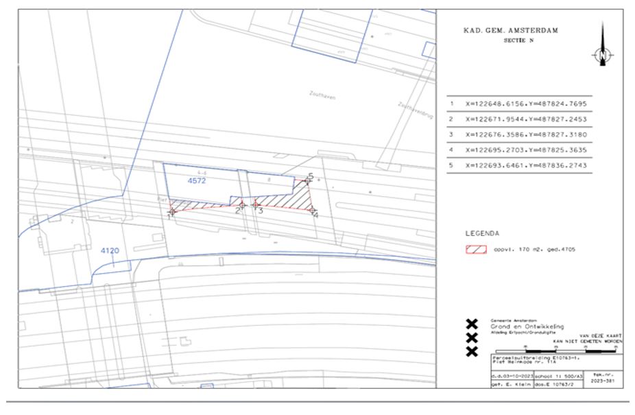 Het betreft een perceel/ percelen (zijnde thans: kadastrale gemeente Amsterdam, sectie N, perceel 4705 (gedeeltelijk)) met een totale oppervlakte van ca. 170 m2 kaveloppervlak.