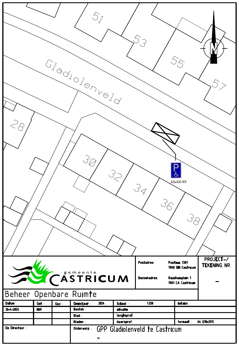 De aanvrager wonende in Gladiolenveld te Castricum heeft verzocht om een gehandicaptenparkeerplaats te reserveren in de directe nabijheid van de woning.