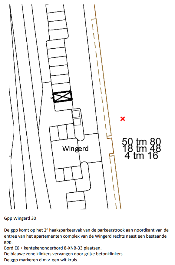 dat het aanwijzen van een gehandicaptenparkeerplaats het beste kan geschieden ter hoogte van de Wingerd 30, volgens de bijgevoegde situatieschets;