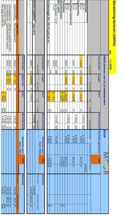 Voor de tarieven voor gesloten verhardingen en groenvoorzieningen zie bijlage A.