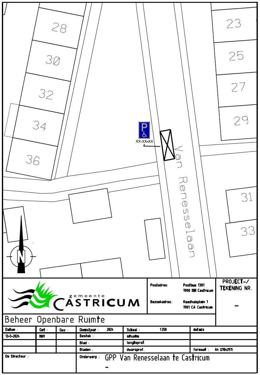 De aanvrager wonende in Van Renesselaan te Castricum heeft verzocht om een gehandicaptenparkeerplaats te reserveren in de directe nabijheid van de woning.