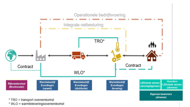 In het geval van Everdingen wordt aangestuurd op een integraal warmtebedrijf dat verantwoordelijk is voor opwek, distributie en levering. De organisatiestructuur wordt hiermee versimpeld wat meer zekerheden geeft voor mogelijke financiers.
