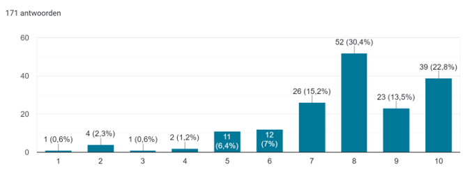 Uitkomst: Ruim 80% van de deelnemers geeft het warmtenet een 7 of hoger.
