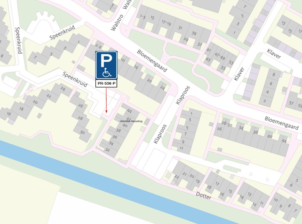 Het instellen van een gehandicaptenparkeerplaats door het plaatsen van verkeersbord E6 uit bijlage 1 van het Reglement Verkeersregels en Verkeerstekens 1990 (RVV 1990) inclusief onderbord met kenteken PR-536-P op de locatie Speenkruid ter hoogte van huisnummer 38 in Doorn, conform de bij dit besluit behorende tekening.