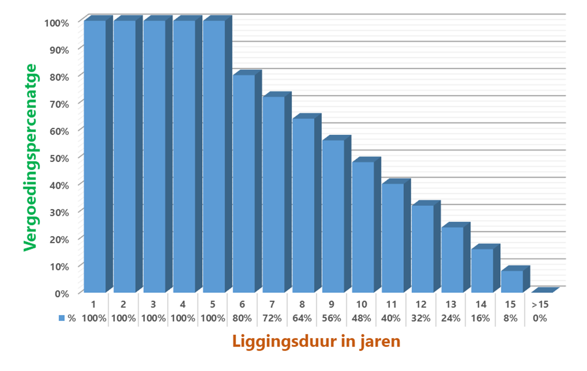 De nadeelcompensatie voor het aanpassen van kabels en leidingen wordt primair afgeleid van de tijd die de kabels en leidingen in de grond hebben kunnen liggen. Bij voorkeur wordt de liggingsduur vastgesteld aan de hand van de datum van vergunningverlening voor de betreffende kabel of leiding en de datum van het wijzigen dan wel intrekken van die vergunning. De liggingsduur kan ook op andere wijze aannemelijk worden gemaakt, bijvoorbeeld door middel van een as-built-tekening voorzien van een datum.