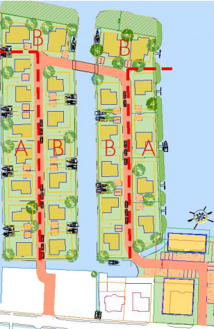 In het plan zijn 26 vrije bouwkavels opgenomen. De kavels zijn gelegen op de met water omringde landtongen. De oppervlakte van deze vrije bouwkavels varieert tussen de 386 en 783 m2. De directe vaarverbinding van de Ringvaart met de Vinkeveense plassen maakt dat de kavels een sterke verbinding hebben met het water. Daarom heeft elke kavel een eigen insteekhaven voor een boot of sloep. De overgang tussen het water en de tuin zijn gevormd middels natuurlijke oevers. Langs de oostelijke landtong zijn langs de natuurijsbaan rietkragen gesitueerd. De woningen vertonen samenhang, maar er is ook voldoende ruimte voor de individuele expressie van de woning.