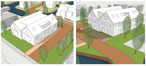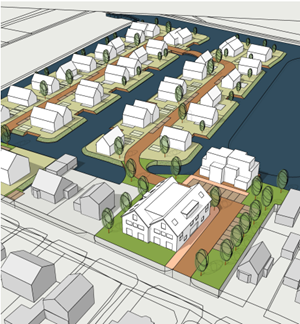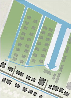 Uitgangspunten bebouwing op de landtongen De vrijstaande woningen worden zorgvuldig ingepast in het slagenlandschap.
