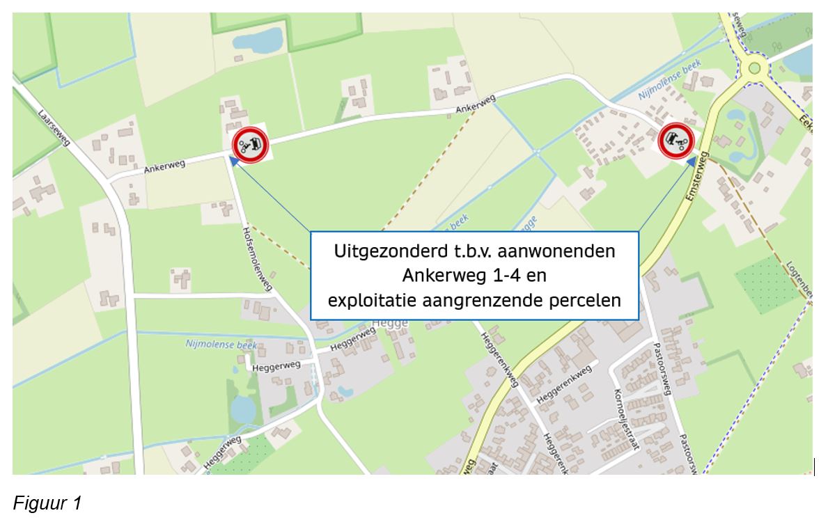 1. door middel van het plaatsen van verkeersbord C12 met een onderbord met de tekst ‘uitgezon derd t.b.v. aanwonenden Ankerweg 1-4 en exploitatie aangrenzende percelen’ van bijlage 1 van het RVV 1990 de Ankerweg af te sluiten voor alle motorvoertuigen behoudens de uitzonderingen;