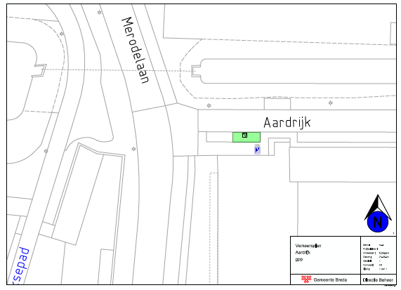 Een gehandicaptenparkeerplaats op kenteken aan te wijzen in Aardrijk te Breda. Een en ander zoals weergegeven op de bijgevoegde tekening ‘Verkeersplan Aardrijk gpp’.