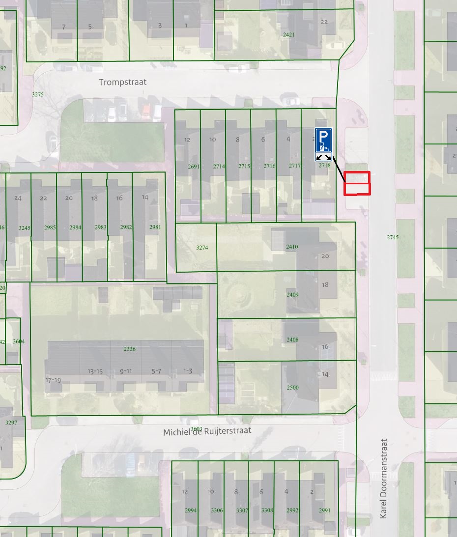 tot het aanwijzen van de volgende parkeervakken, uitsluitend voor elektrische personenauto's, nabij het aan te brengen oplaadpunt bij de 2 op tekening aangegeven vakken van het parkeerterrein gelegen ten noorden van Karel Doormanstraat nr. 20 te Kloosterzande, middels plaatsing van bord E08 “laden elektrische auto” en onderbord OB504 van bijlage I behorende bij het ‘Reglement Verkeersregels en Verkeerstekens 1990’.
