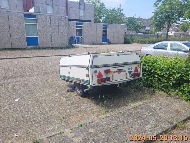 Op het parkeerterrein ter hoogte van Slagbaai 5 te Almere is een aanhanger geplaatst in strijd met het bepaalde in artikel 5:5 van de Algemene Plaatselijke Verordening (APV 2011. Op grond van dit artikel is het verboden met een voertuig dat voor recreatie of anderszins voor andere dan verkeersdoeleinden wordt gebruikt zoals een caravan, een kampeerwagen, een aanhangwagen, een keetwagen of ander dergelijk voertuig langer dan op drie achtereenvolgende dagen zonder wezenlijke tijdsonderbreking te plaatsen of te hebben op de weg binnen de bebouwde kom.