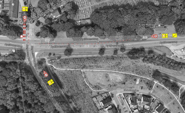 Om op zondag 23 juni 2024 van 8.00 tot 18.00 uur wegafzettingen en borden te plaatsen overeenkomstig model C1 (in beide richtingen gesloten voor alle voertuigen, ruiters en geleider van rij- en trekdieren of vee) en model A1 (maximumsnelheid 30 km/h) op de Apeldoornseweg, Waterbergseweg, Weg achter het Bos, Willemsplein, Zijpendaalseweg, Amsterdamseweg, Apeldoornsestraat, Velperplein, Velperbuitensingel in Arnhem, een en ander zoals aangegeven op de volgende afbeeldingen.