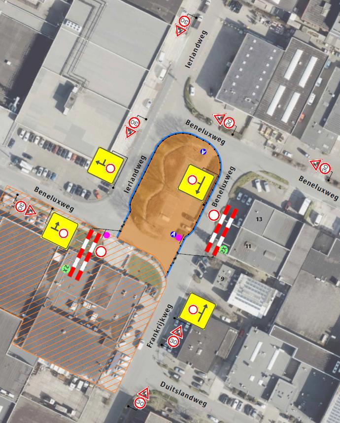 is het gewenst om voor een periode langer dan 4 maanden 30 meter van de Beneluxweg en het aangrenzende parkeerterrein tijdelijk af te sluiten voor het verkeer en deze te voorzien van een wegafsluiting met het verkeerbord C1 van bijlage I van het Regelement Verkeersregels en Verkeerstekens 1990, ondersteund door een omleidingsroute.