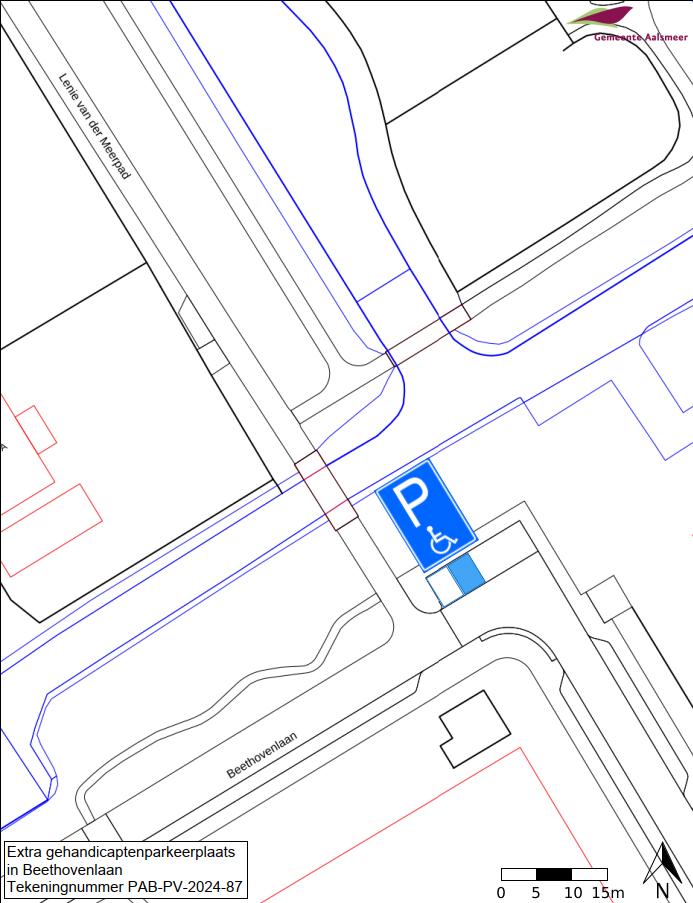 Burgemeester en wethouders van Aalsmeer besluiten om in de Beethovenlaan ter hoogte van de Midgetgolfclub Aalsmeer, Beethovenlaan 116, een tweede gehandicaptenparkeerplaats aan te wijzen.